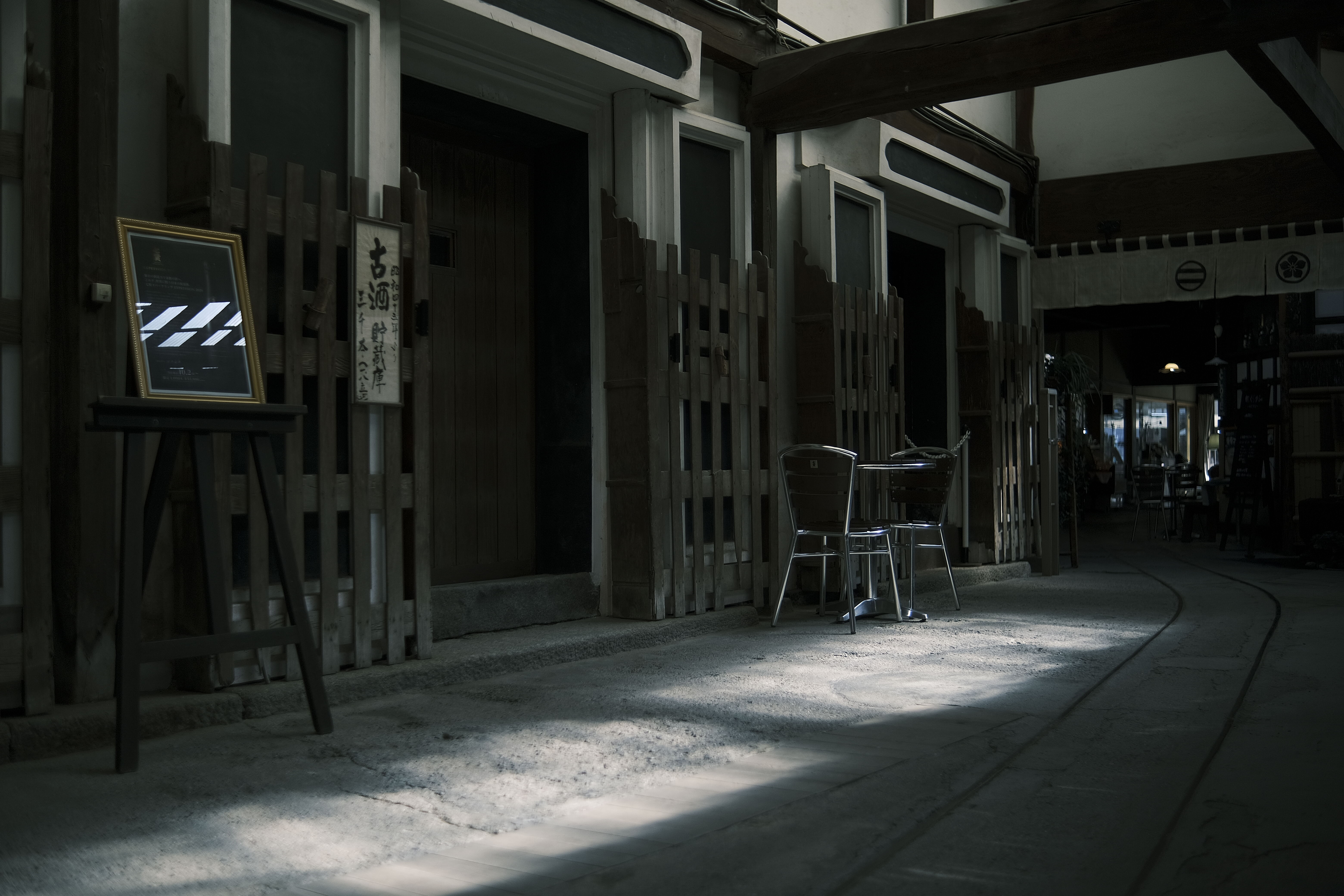 atx-m 23mm F1.4 Xが持つダークトーンの再現の良さは、こうした趣のある建物やその屋内のスナップでも独特な撮り味を見せる。筆者は、この「趣」のある酒蔵を見たとき、落ち着いた重みのある空気感で撮影するため少しアンダー目で撮影する事ことを頭で描いた。まずは、酒蔵全体を標準然として撮影、その後上左のような屋内の光と影を探し暗部を主役にしダークトーンの階調を楽しみながら撮影、atx-m 23mm F1.4 Xはしっかり締まる「黒」が出せるので「光が灯る場所」を見つけて撮影したり、広角らしいパースを効かせた画で「趣」を出しながら撮影していく。atx-m 23mm F1.4 Xは、締めるところはしっかり黒が締まるが、なだらかなダークトーンの再現をしてくれるのでこうした「影」を楽しむことが出来るレンズだといえるだろう。