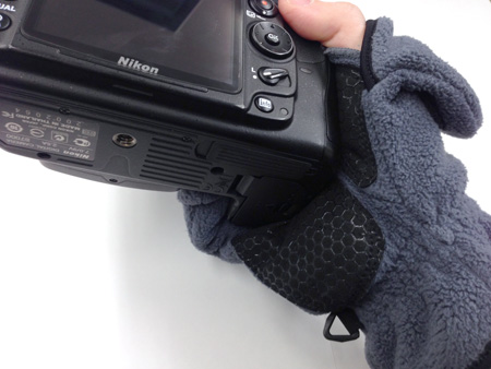 いえいえ、この手袋、親指と人差し指を出して使えるので、カメラの操作には問題ナシ!
