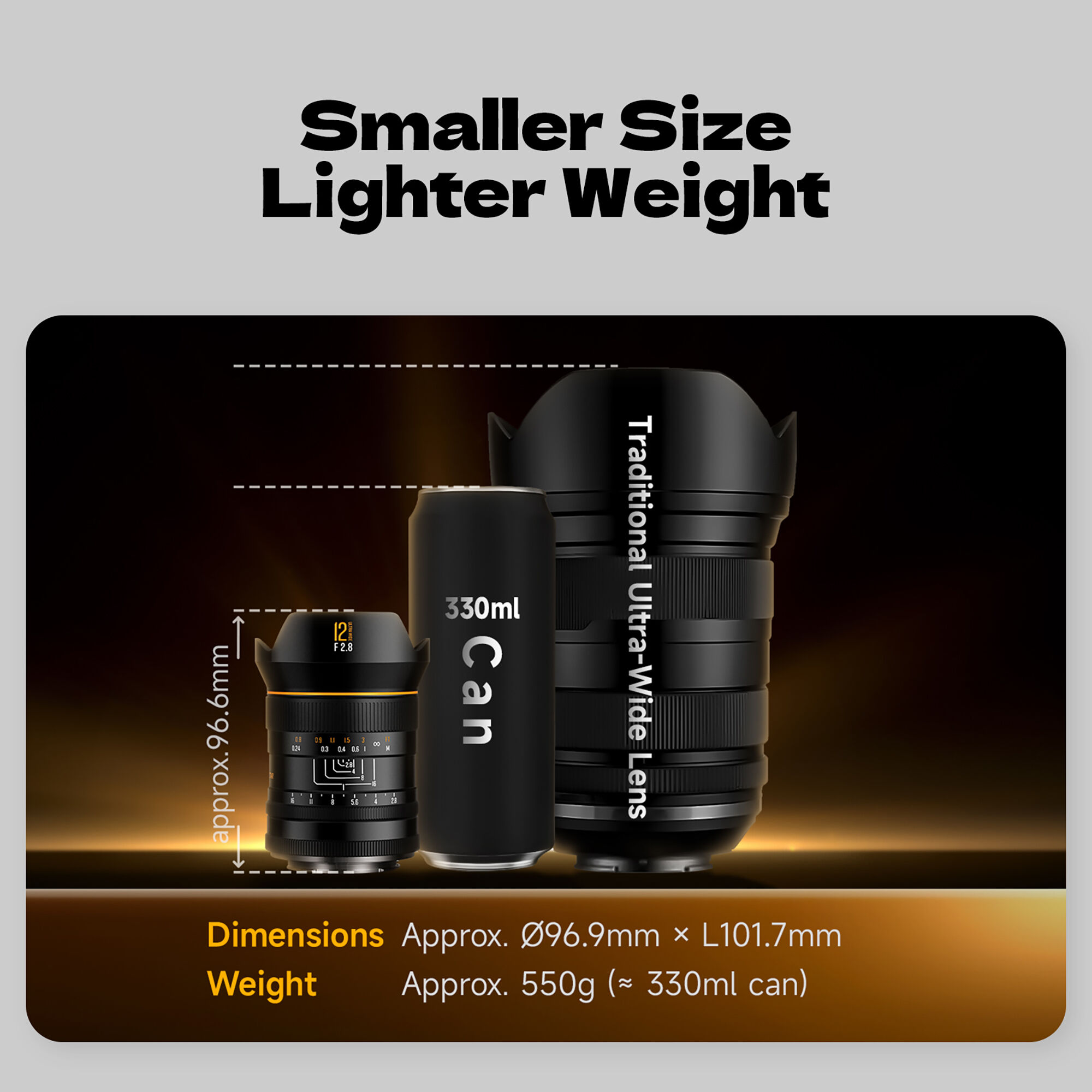 122.5°の超広角ながら、小型軽量を実現したフルサイズ12mm F2.8マニュアルフォーカスレンズです。