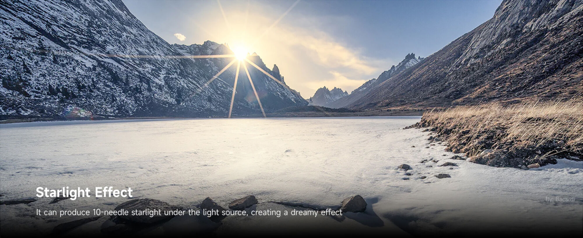 34mm径後部取付タイプのナチュラルナイトリアレンズフィルターを付属。光害をカットし、より美しい星空撮影を可能とします。