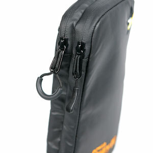 防水生地のTPUやYKK製防水ファスナーを採用。またロック付きカラビナや、ベルトループ、三脚取り付けフラップを装備した3WAYタイプで、82mmのフィルターを8枚収納することが可能。