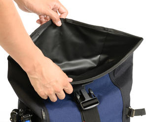 表地に強靭なコーデュラナイロン、内装は防水素材のTPU※1をウェルダー加工※2し、外部からの雨などの侵入を防ぎ、大切な機材を守ることができます。
