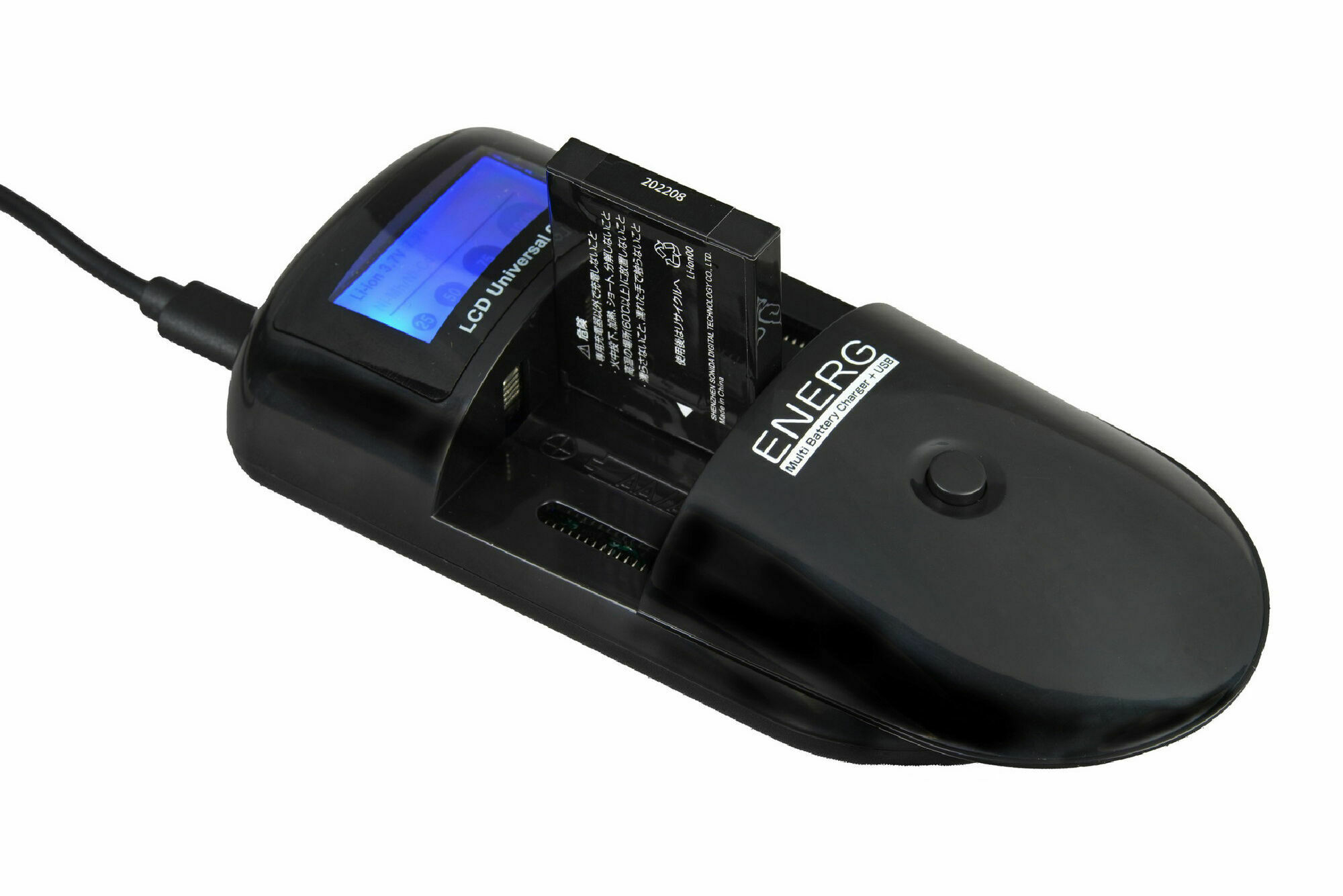 ブルーのバックライト&大きく見やすいLCDモニター採用。リチウムイオンバッテリー充電時、ニッケル水素・ニカド充電池の充電時に充電状態をパーセンテージで表示。