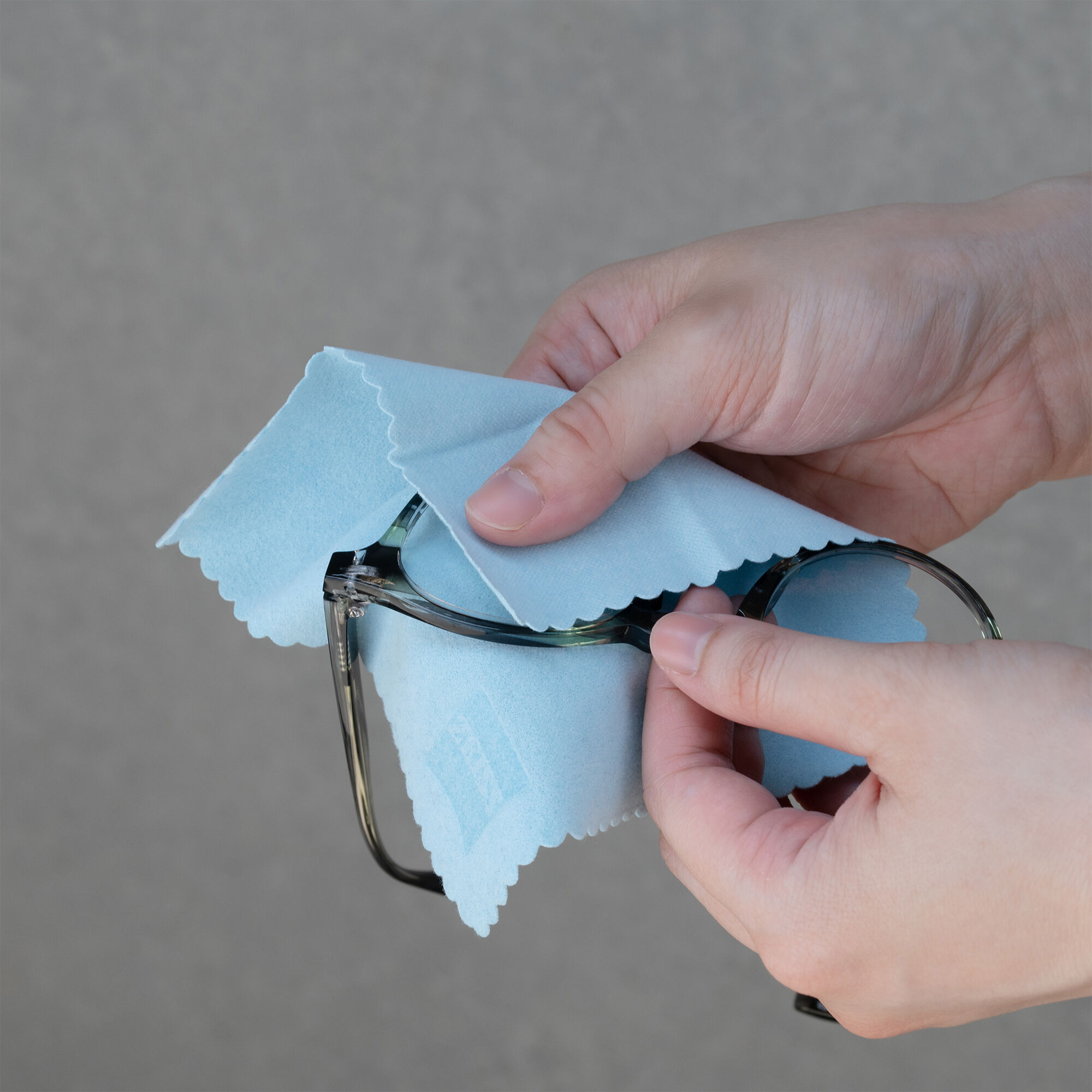 特別開発のクロスにより、レンズのコーティングを傷めることなく、サッと優しくクリーニングできます。 -