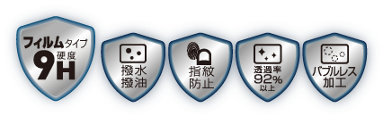| フィルムタイプ | 撥水・撥油コーティング+ハードコート9Hタイプ |