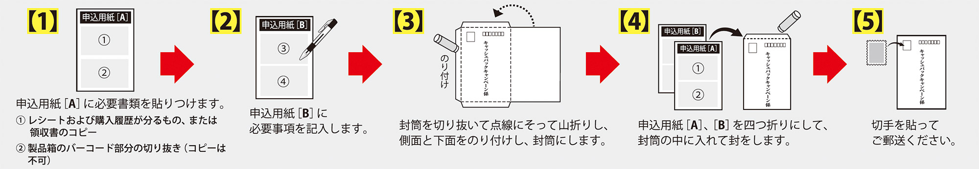 本キャンペーンは、対象商品をご購入いただいた個人のお客様に、正確にキャッシュバックをさせていただくため、バーコードの切り抜き、添付をおねがいしています。ご理解とご協力のほど、よろしくお願い申し上げます。