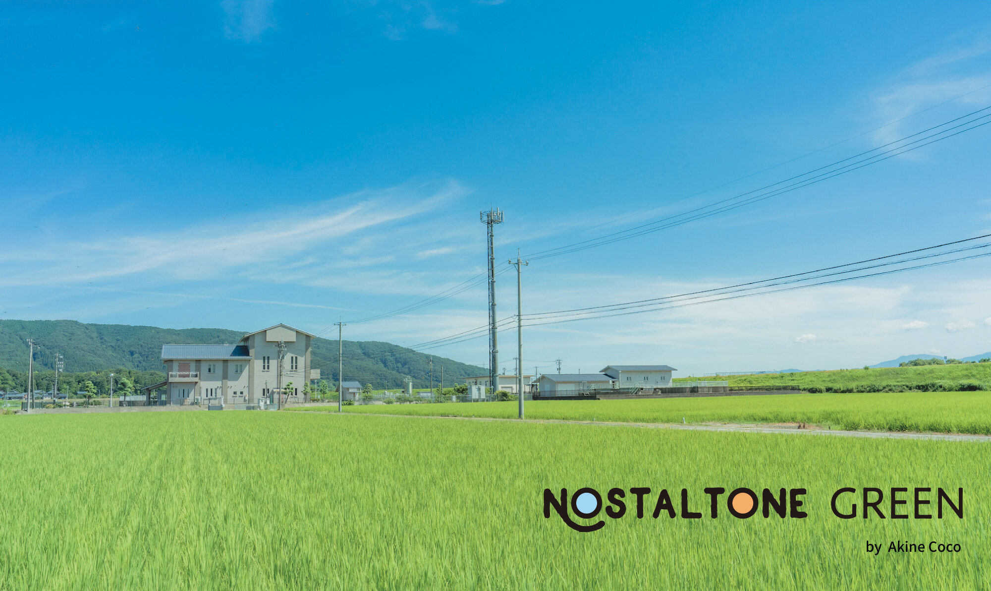 透明感のある淡いグリーンが全体に柔らかく広がり、ノスタルジックな雰囲気を作り出します。緑あふれるシーンでは生き生きとしたグリーンの発色が得られます。青空はブルーからシアン寄りの色味になり、爽やかでありながら懐かしい温かみを感じさせる色味になります。