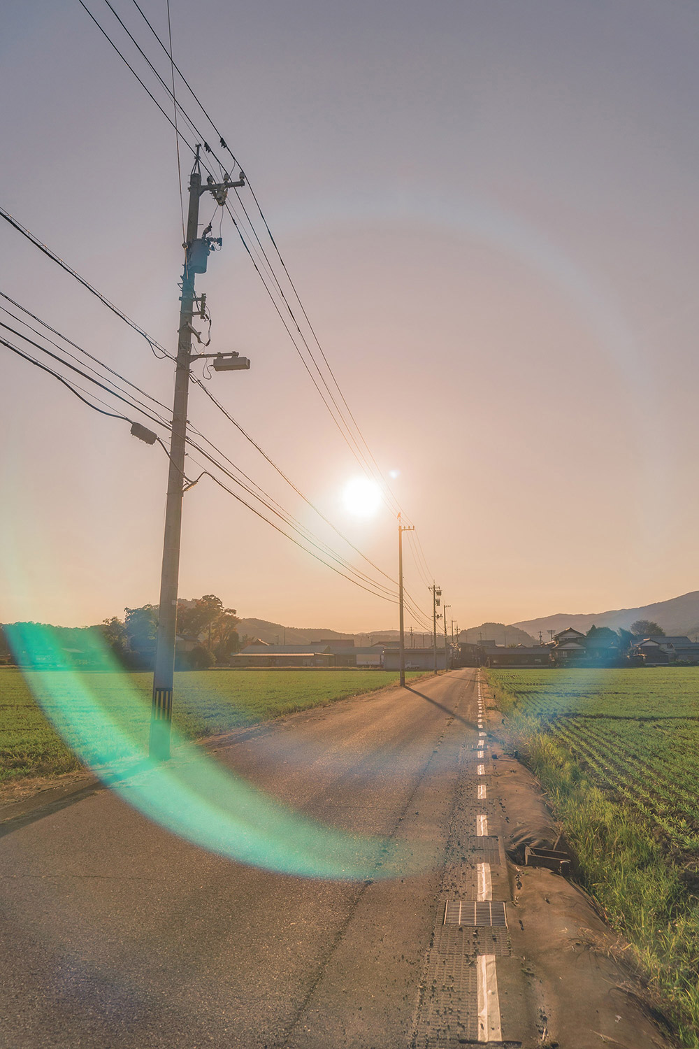 ノスタルトーン・ブルーには光を拡散させる効果もあります。朝夕の低い位置にある太陽の光を拡散させ、やさしい光に包まれたようなノスタルジックな雰囲気にします。真逆光では拡散効果が強いため、半逆光やサイド光で取り入れたり、太陽全体または一部を建物や木、人などで隠してして撮るとほどよい拡散効果になります。
