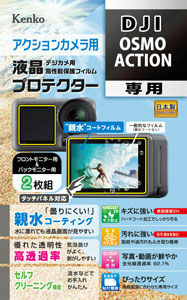 株式会社ケンコー・トキナー(社長:山中 徹)は、防水カメラにも対応するよう親水コーティングを施した液晶保護フィルム「防水カメラ用 液晶プロテクター〈親水タイプ〉」に「DJI Osmo Action 用」を追加し、2019年5月30日より販売いたします。希望小売価格は¥1,800(税別)。
