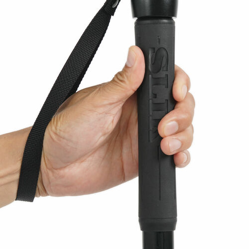 ストラップは、持ち運び時には手を通して落下防止に。撮影時は手を通すことで一脚の転倒防止に役立ちます。