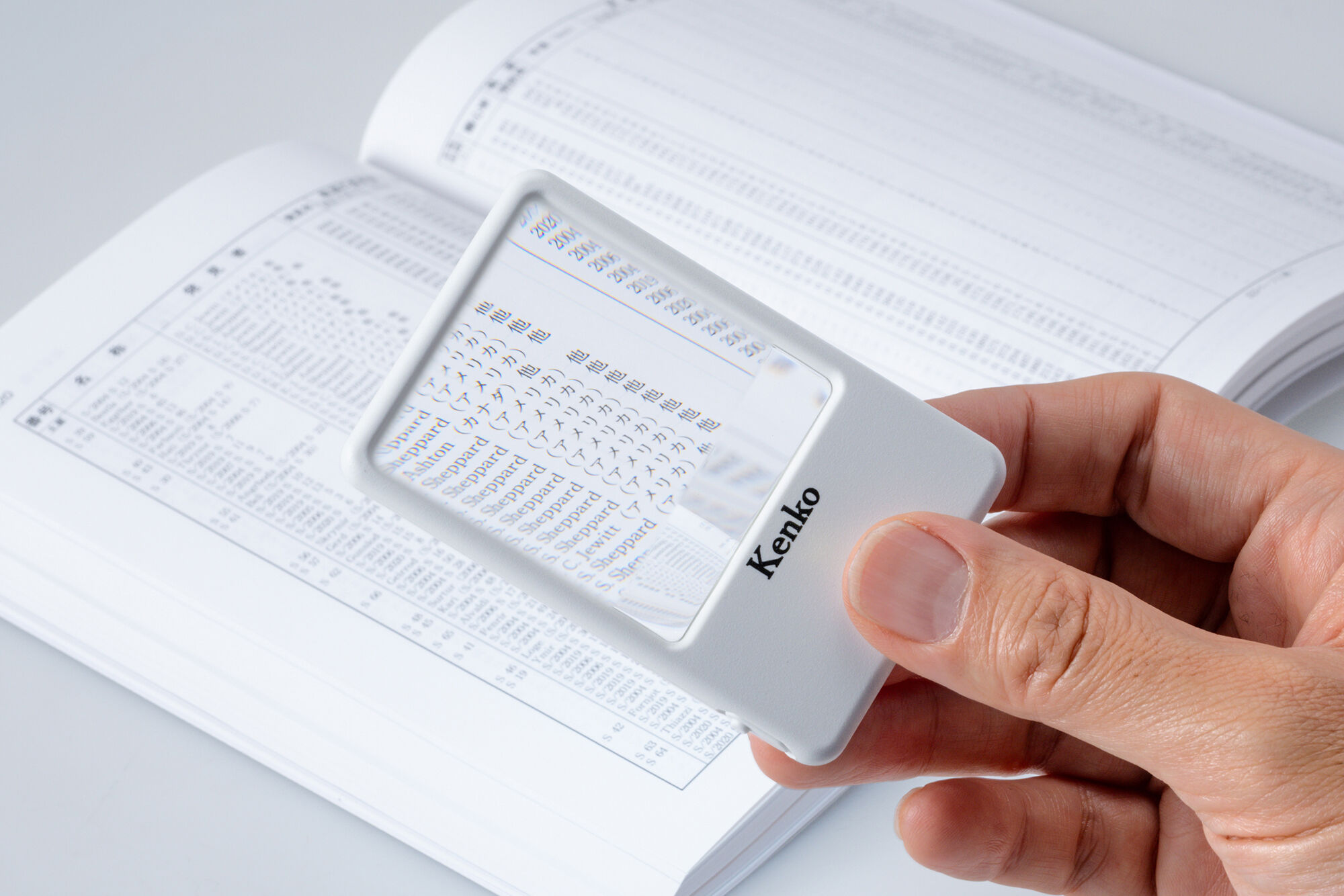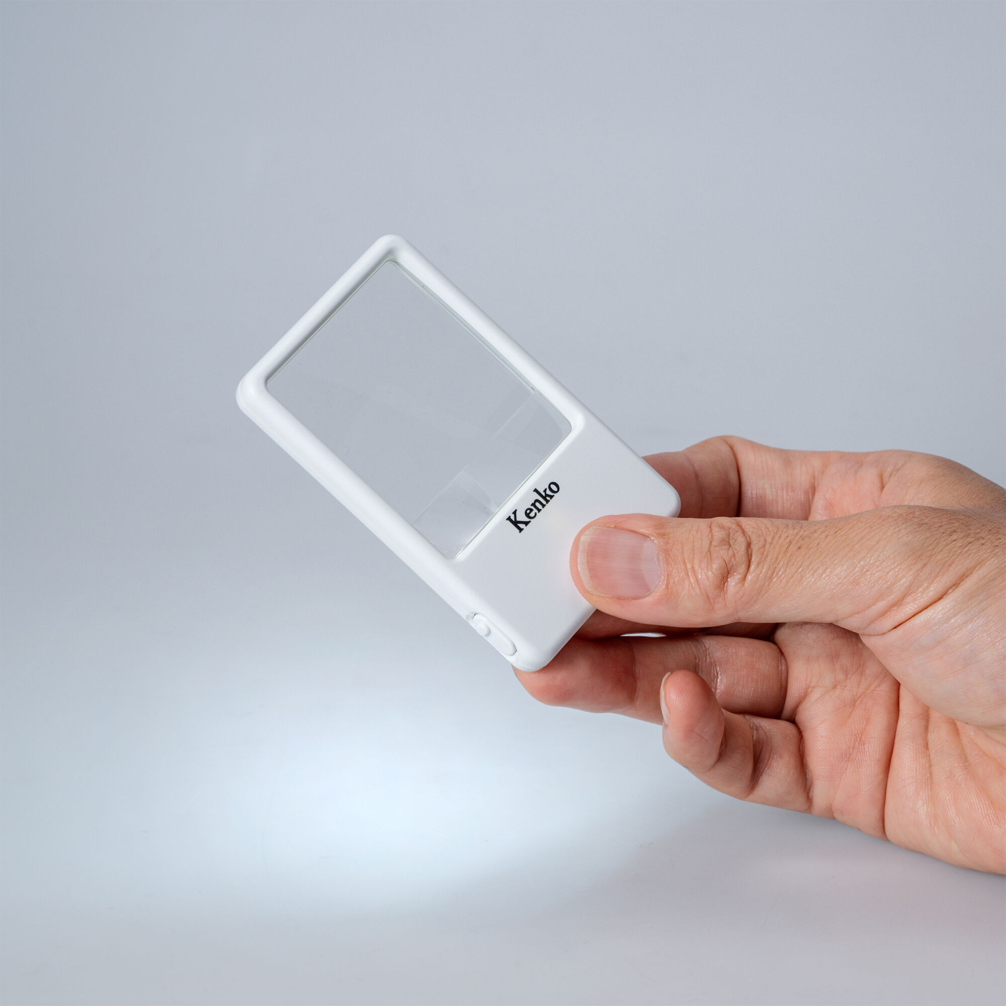 携帯に便利なカードタイプのLED付き拡大鏡。