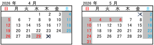■ゴールデンウィーク期間の出荷停止日:4月30日(木)、5月1日(金)