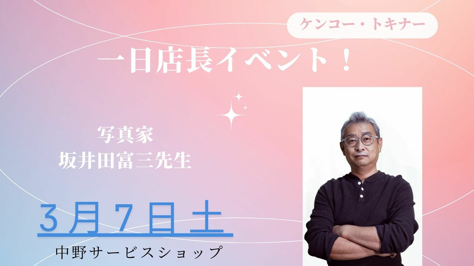 | イベント名 | 1日店長イベント!坂井田富三先生 |