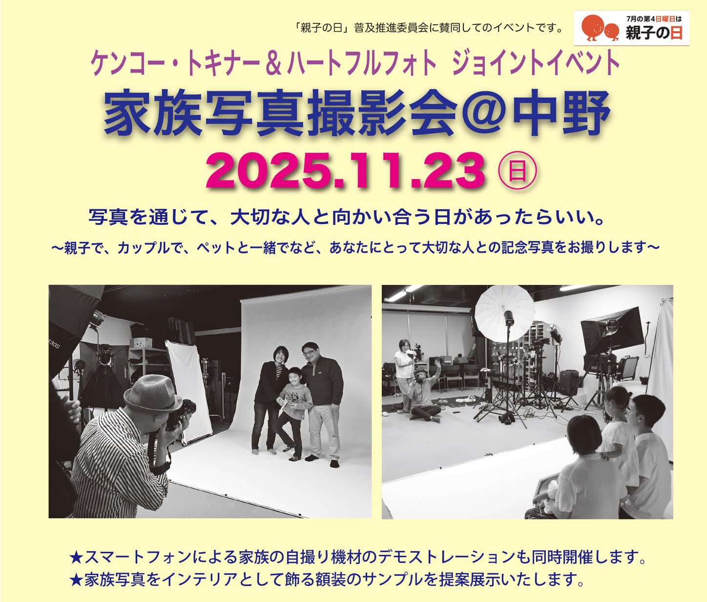 イベント名 | 11月23日(日)、プロの写真家が家族写真を撮影する「家族写真撮影会@中野」開催 |