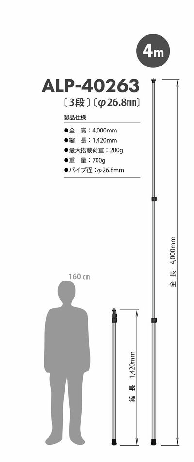 アルミ伸縮ポールALPシリーズ スリック特品 ALP-40263〔3段〕〔Φ26.8mm〕