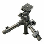 2ウェイ雲台付きのミニ三脚。フルサイズミラーレスを搭載可能なしっかりした構造です。
