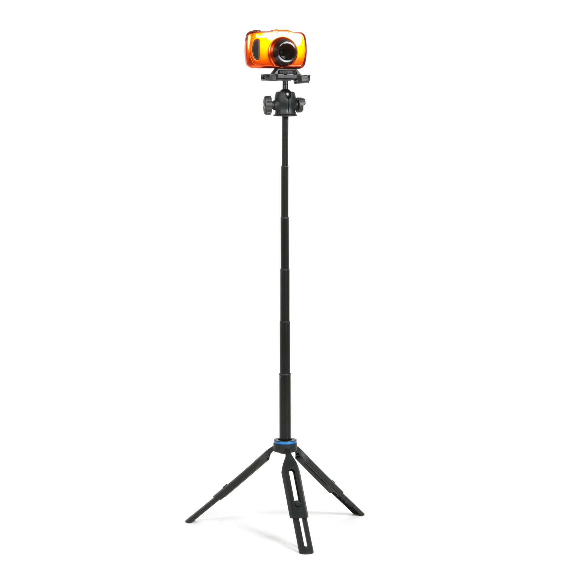 持ちやすい形状で手持ち三脚(グリップ)として、 またセンターポールを伸ばせば、自撮り棒としても使用可能です。