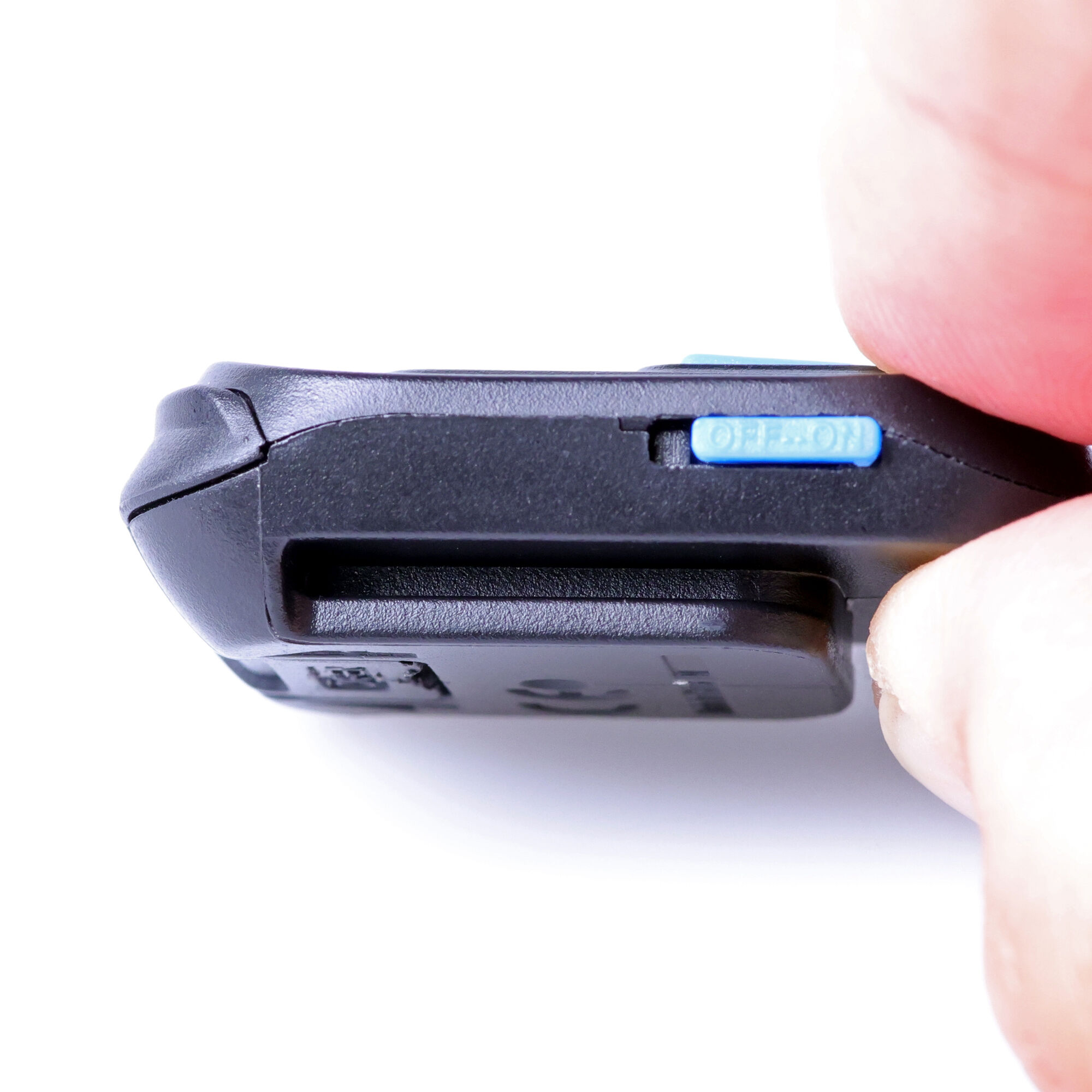 コンパクトで持ち運びやすいサイズながら、操作部をブルーにすることで、わかりやすくしています。
