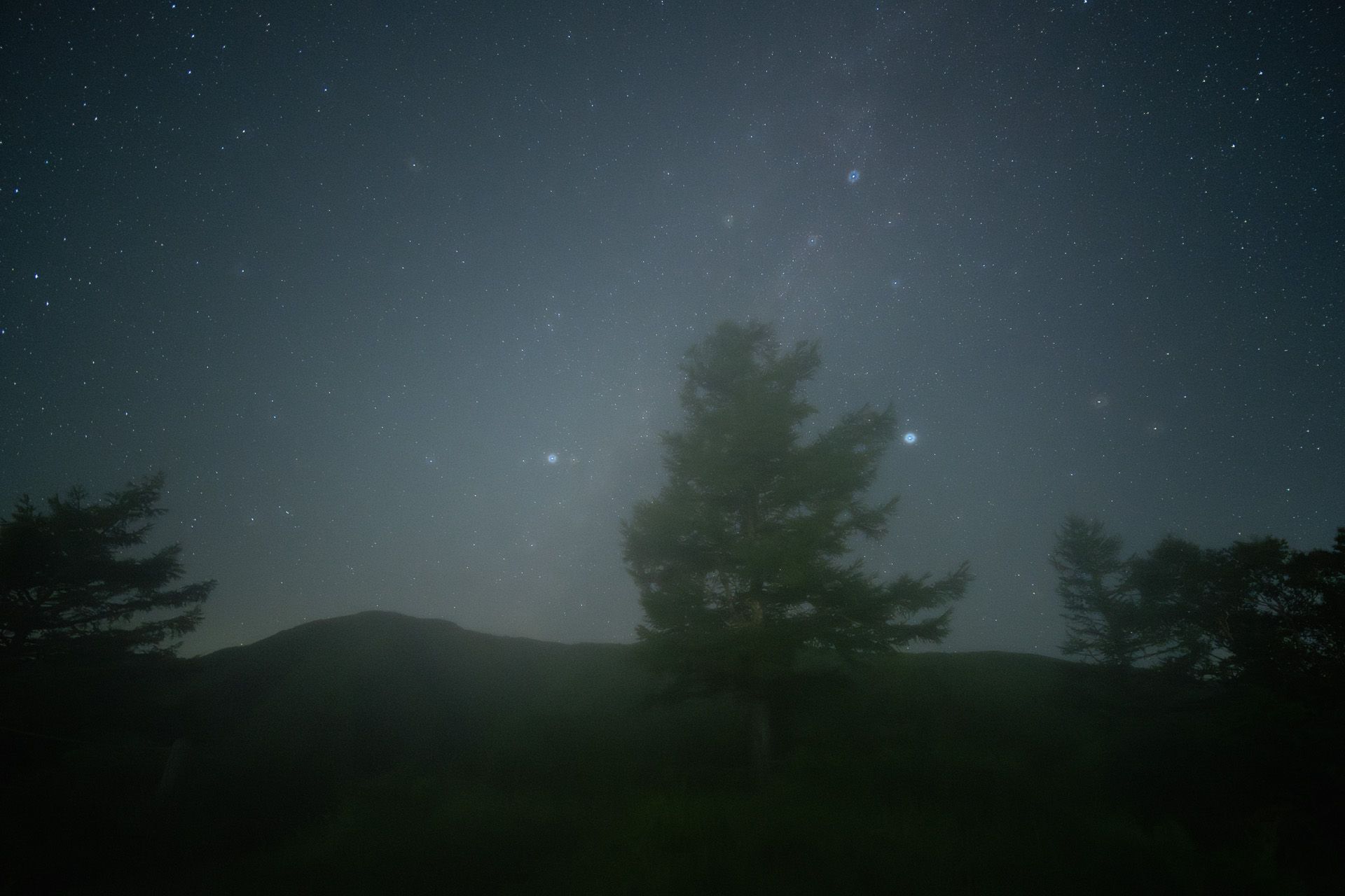 ここでお見せする3点の作例はAnti-Fog ハーフプロソフトンクリアとAnti-Fog スターリーナイトを重ねて使用したものです。高品質なマルチコートの効果で画面内に光源があっても、ゴースト、フレアといった描写にとって有害な現象もなく、星は強調されつつも風景はシャープに描写されていることに注目してください。