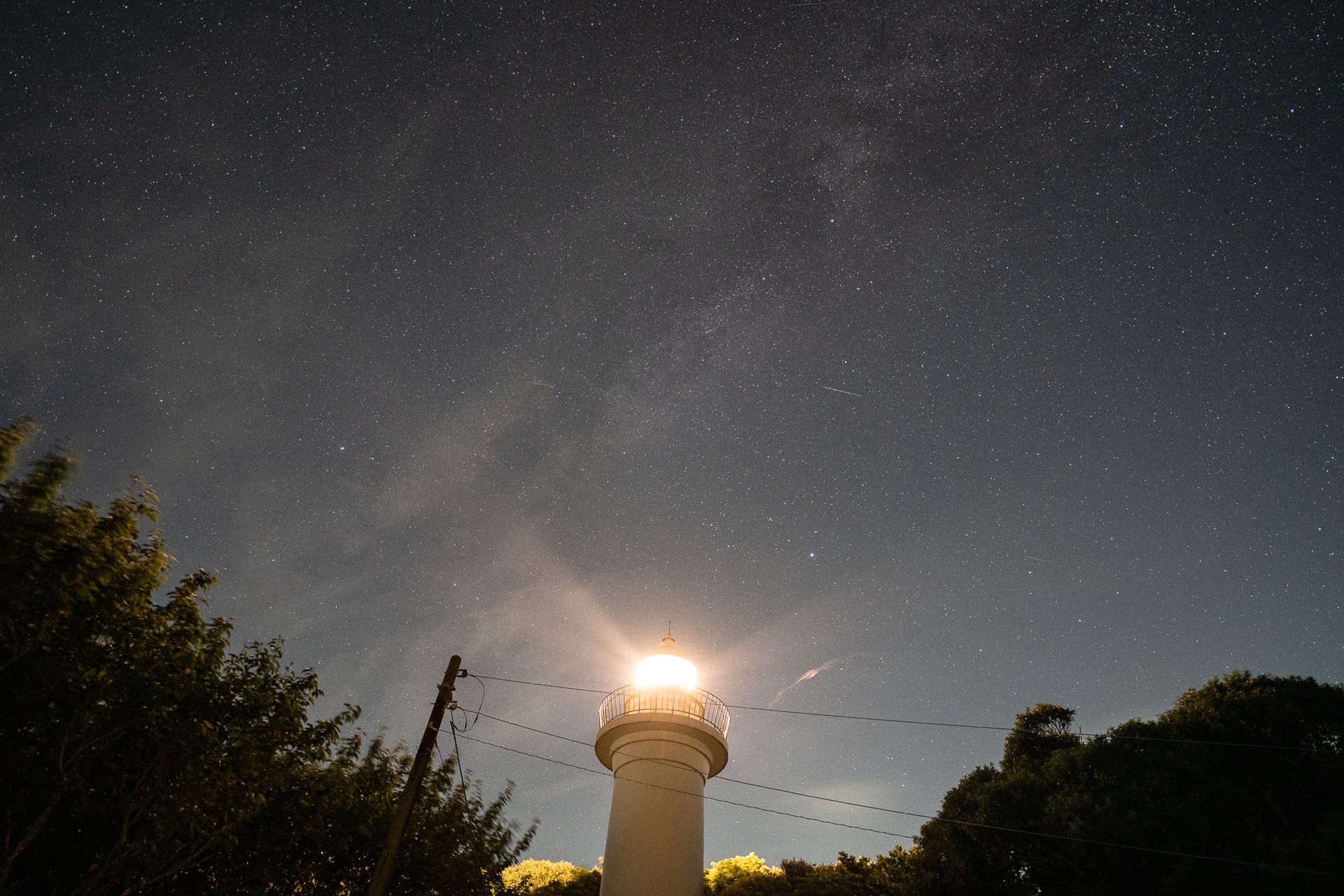 灯台の向こう側は東京方面であり空全体に光害が広がっているが、Anti-Fog スターリーナイトの効果で光害の影響が抑えられた。灯台の光は強く、光芒が発生しているが嫌な印象はない。 マルチコートされているので、有害なゴーストやフレアは発生しておらずすっきりした印象は好ましい。