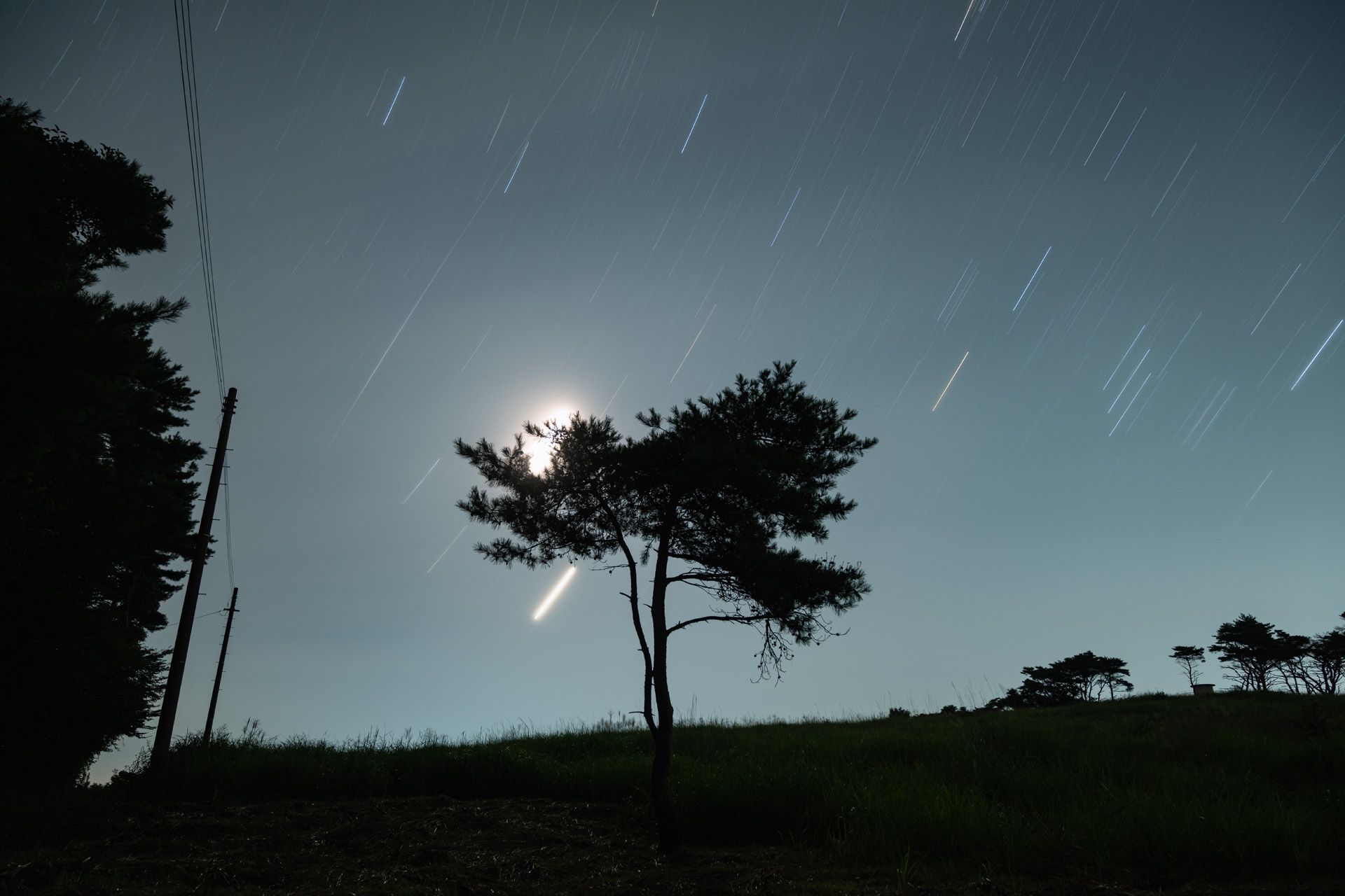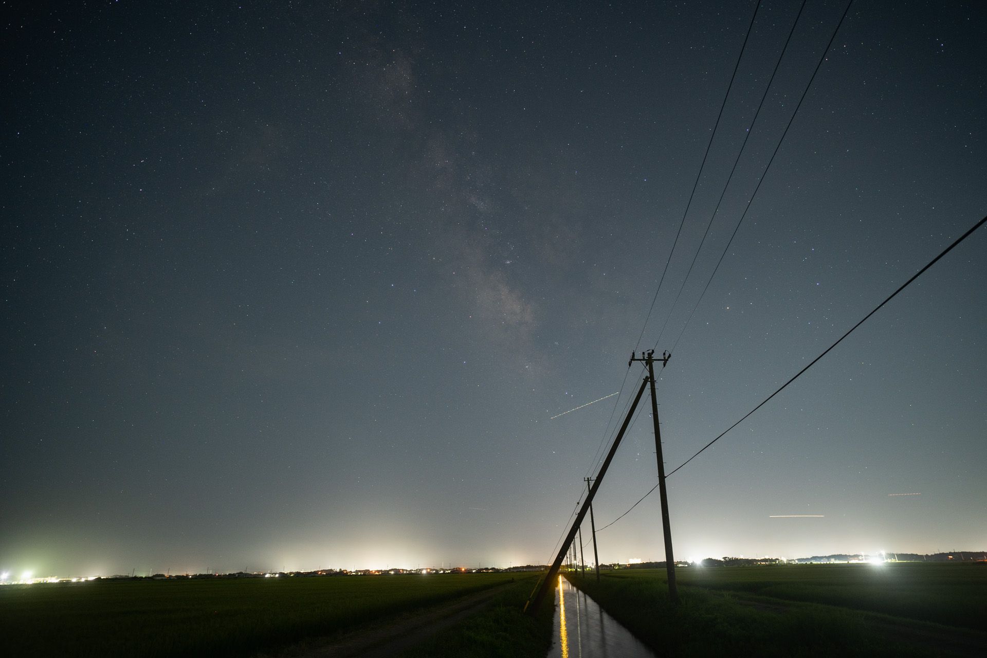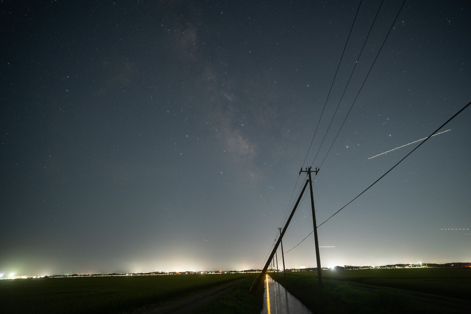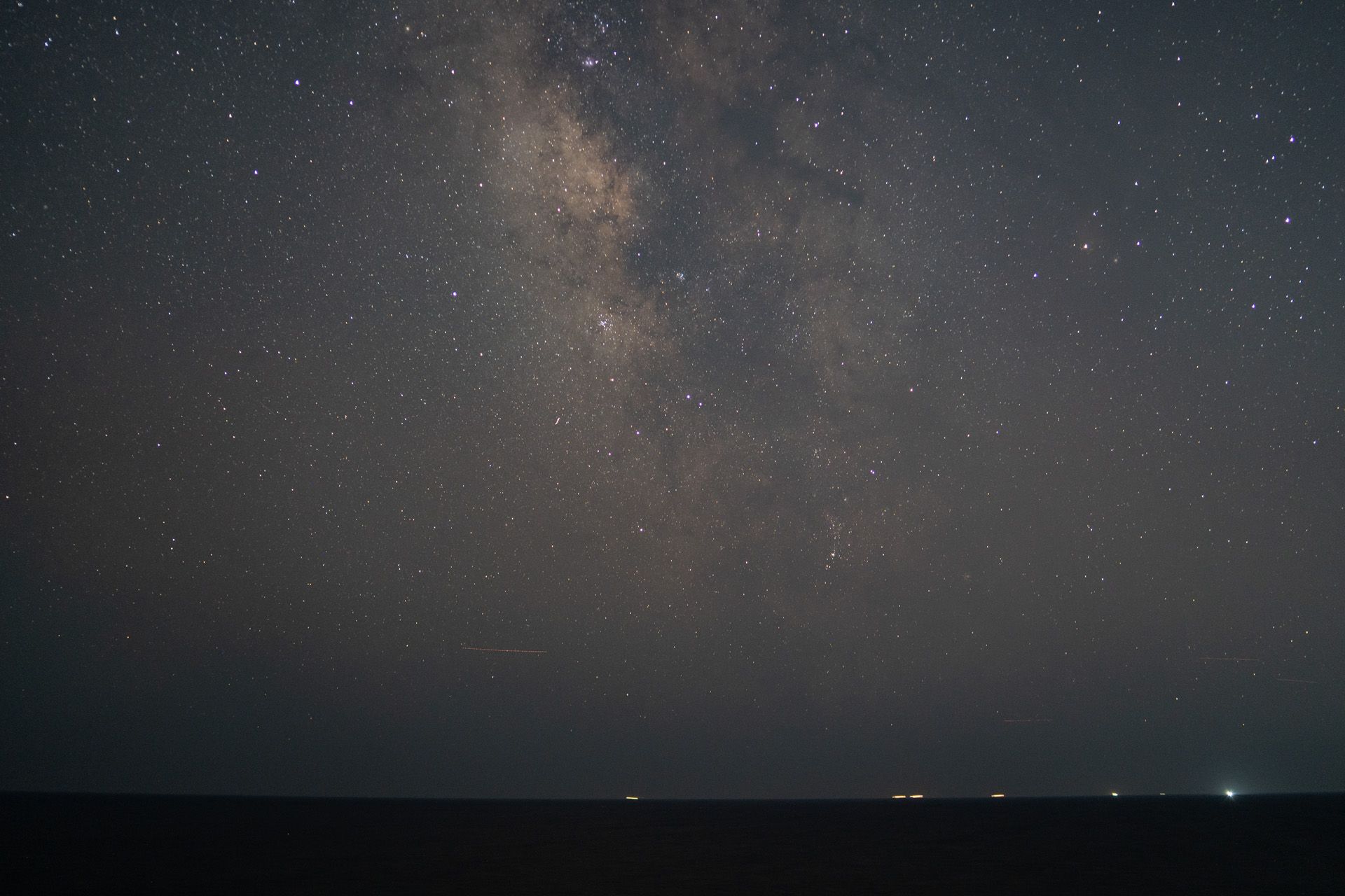 ここは大きな漁港と市街地が近く光害の影響が大きいため、あまり露光をかけることができないため、天の川の描写は少々心許なくなっているが、街灯が映り込む分ハーフフィルターの効果がわかりやすい。