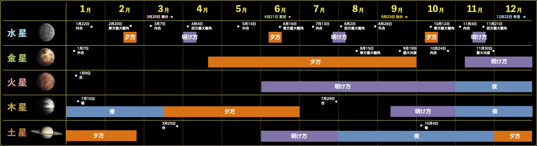 2026年惑星の観望好期