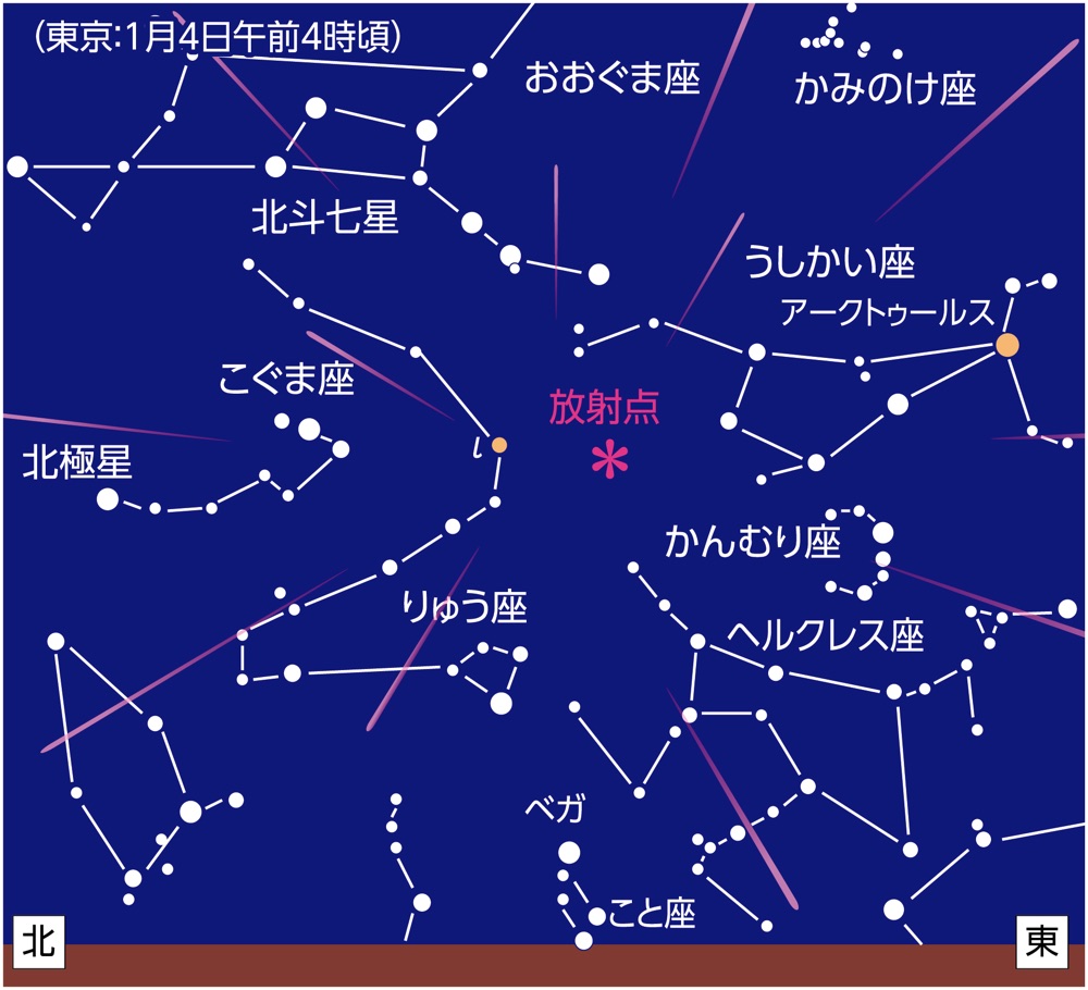 3大流星群の1つ「しぶんぎ座流星群」が4日6時頃極大になると予想されます。あいにく3日が満月のため、空が明るく観測には向きません。