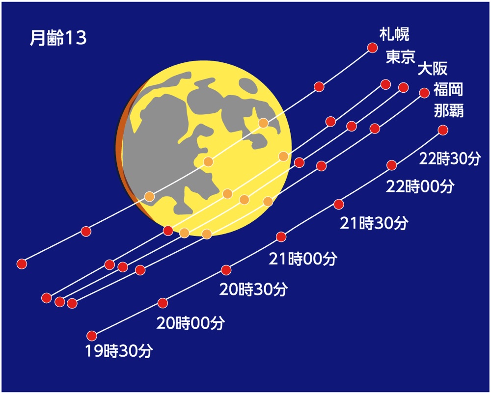 22日19:10くらいから1時間くらいの間月面Xが観測できます。