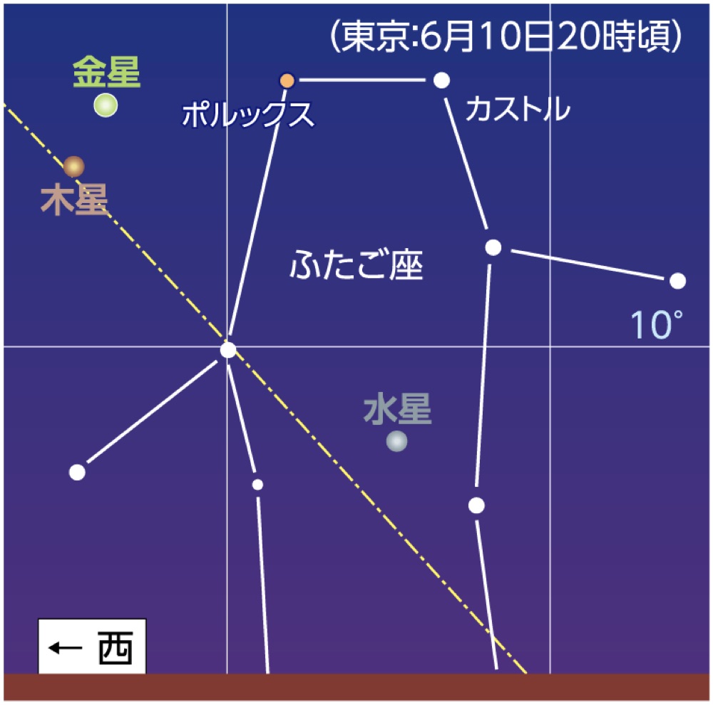 6月9-10日夕方の西の空で金星と木星が接近
