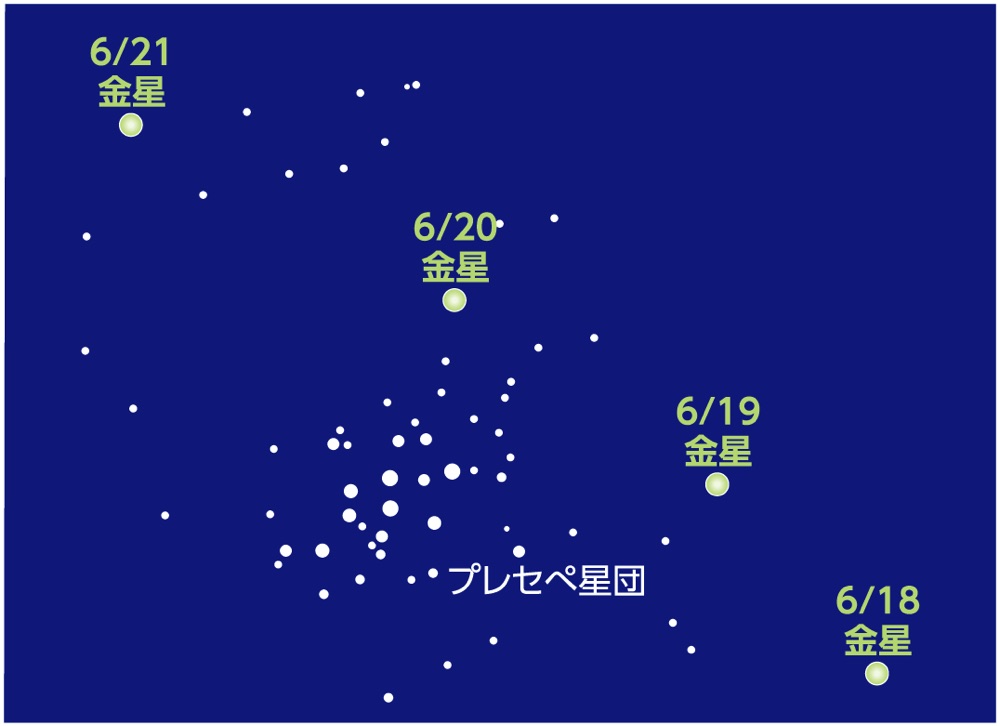 6月18-21日金星がプレセペ星団の中を通過