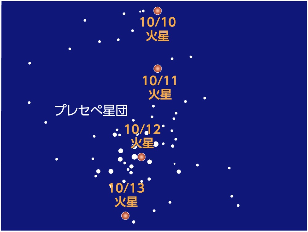 10月10-13日プレセペ星団に火星が侵入