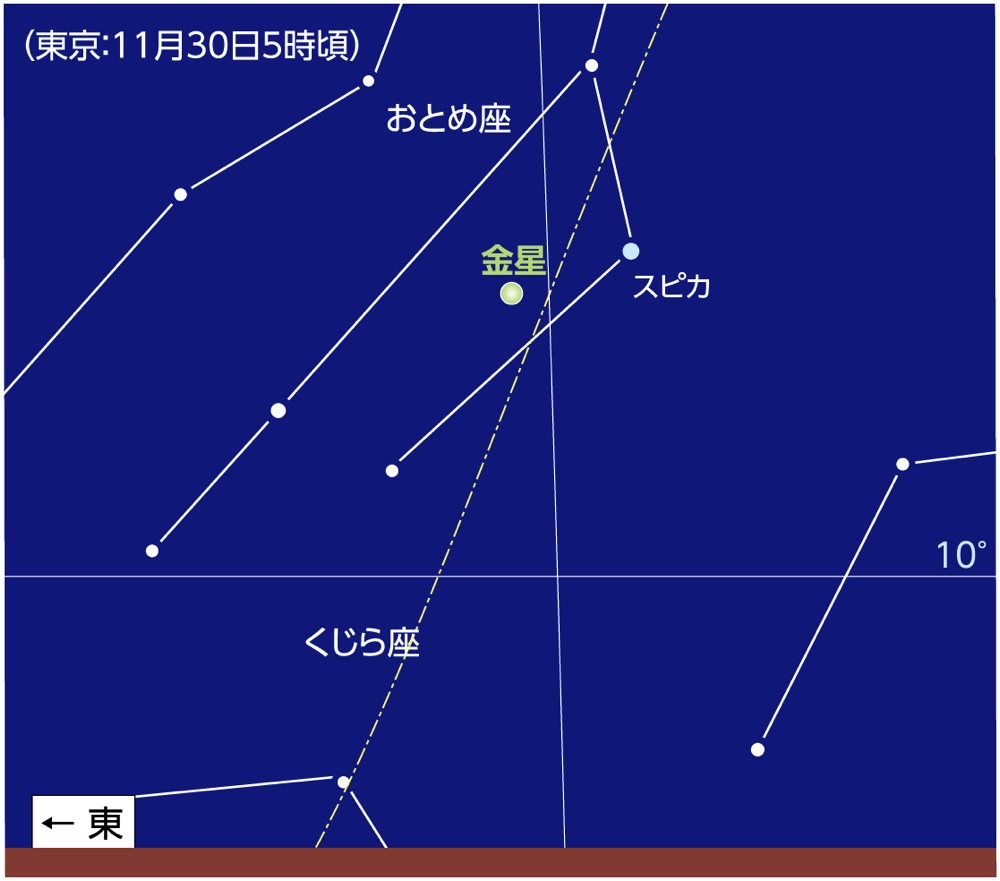 11月30日明け方の空で金星が最大光度