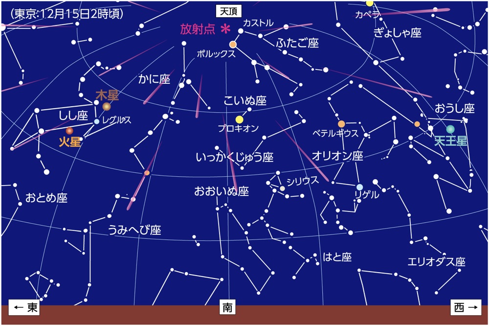 12月13-15日ふたご座流星群極大 (活動期間12/7-12/15)