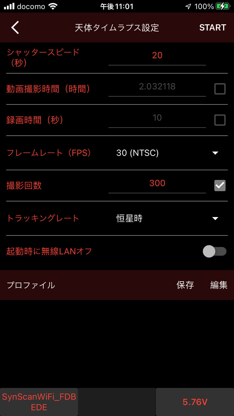 - スマホアプリを使って露光時間、追尾速度などを変更する。