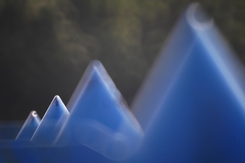 4本並んだ先端が尖ったポールを、手前から順番にピントを合わせて撮影。ピントを合わせる位置を変えるだけで、写真の印象が大きく変わる。